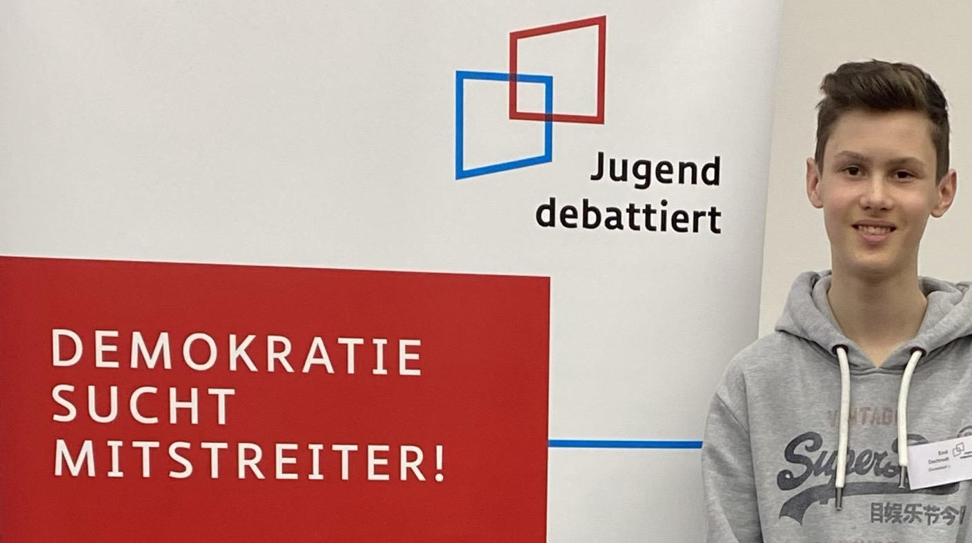Mit Emil haben wir einen GFB Schüler, der zu den vier besten Debattanten in Nordrhein Westfalen gehört.